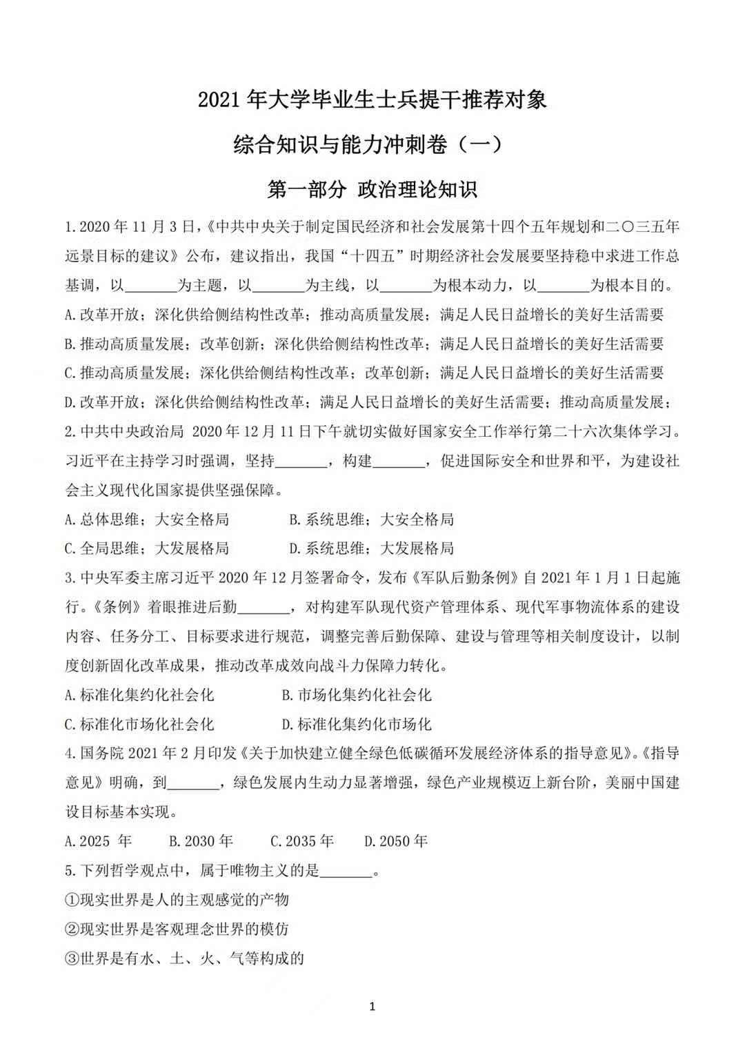 仿真冲刺卷(各科5套)