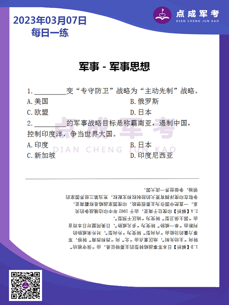2023年3月7日每日一练|军事-军事思想